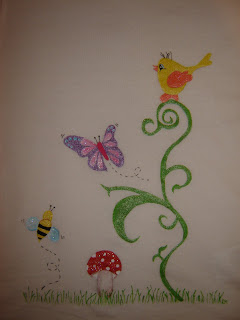 Pintada á mão com tintas proprias para tecido, nao sai com as lavagens.